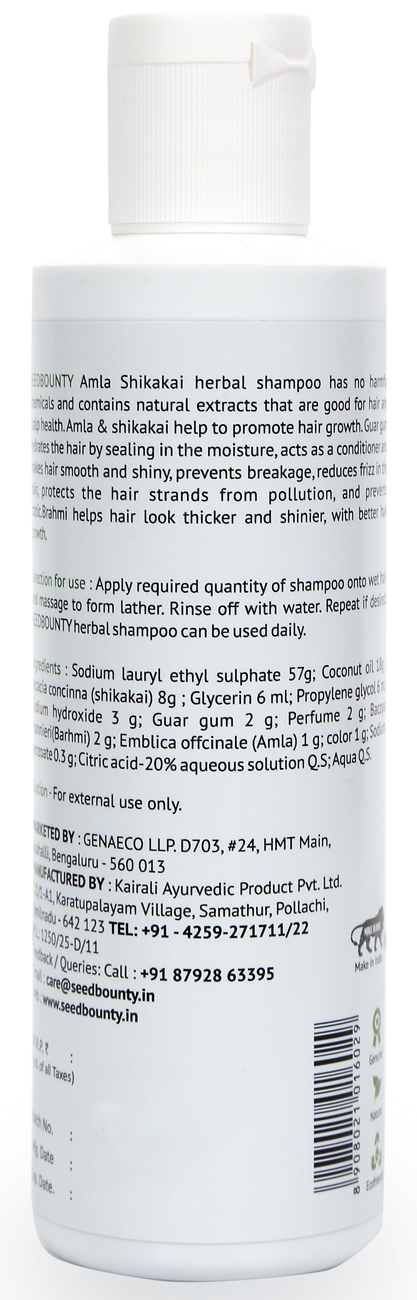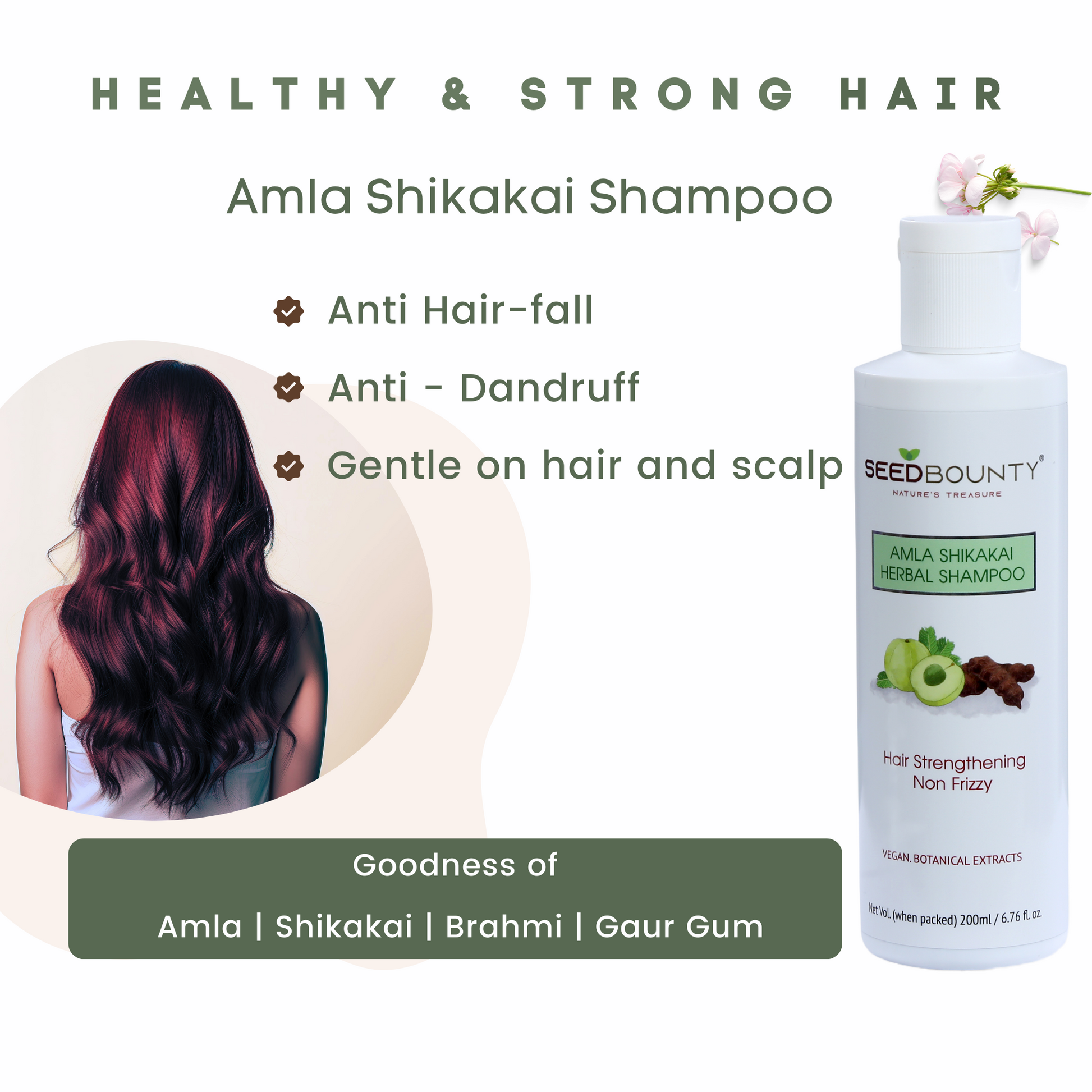 SEEDBOUNTY Amla Shikakai Shampoo with Brahmi & Gaur gum | 200 ml